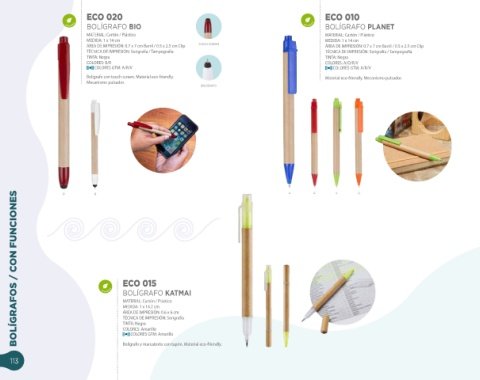 Bolígrafo con touch screen. M aterial eco -friendly. M aterial eco -friendly. M ecanism o pulsador.