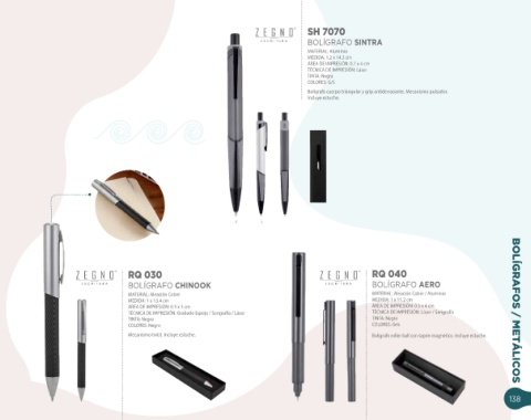 TÉC N IC A D E IM PRESIÓ N : G rabado Espejo / Serigrafía / Láser TÉC N IC A D E IM PRESIÓ N : Láser / Serigrafía BOLÍGRAFOS / METÁLICOS