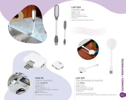Concentrador con 4 puertos U SB 2.0. Incluye botón para encender y apagar la lám para. Cuerpo flexible. N o requiere baterías. 226