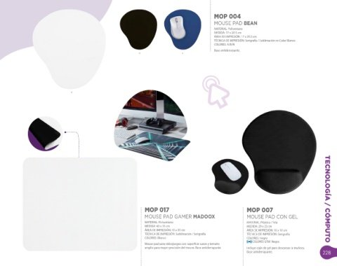 am plio para m ayor precisión del m ouse. Base antiderrapante. Incluye cojín de gel para descansar la m uñeca.