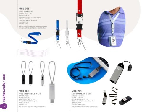 235 U SB con correa de plástico. Incluye caja individual. U SB con cordón de 46 cm . Incluye caja individual.