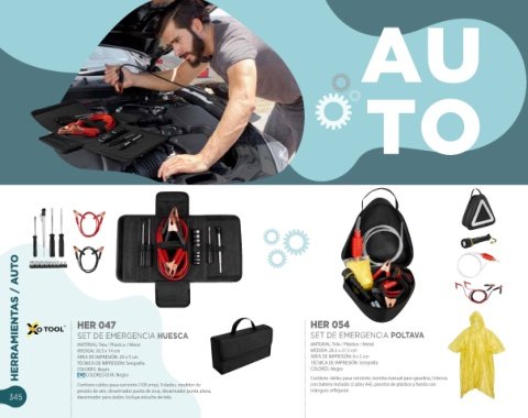 Contiene cables pasa corriente, b om ba m anual para gasolina, linterna