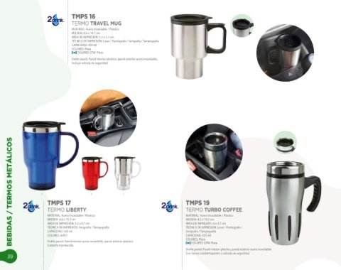 D oble pared. Pared interior acero inoxidable, pared exterior plástico. CO LO RES G TM : Plata