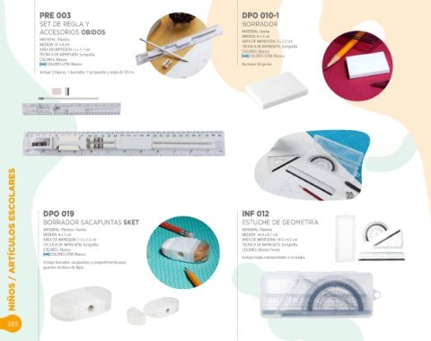 Incluye 2 lápices, 1 borrador, 1 sacapuntas y regla de 30 cm .