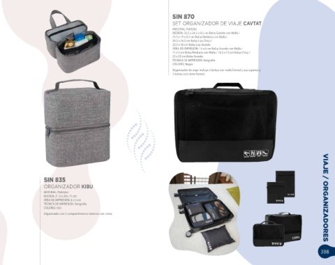 O rganizador de viaje. Incluye 2 b olsas con m alla frontal y asa superior y