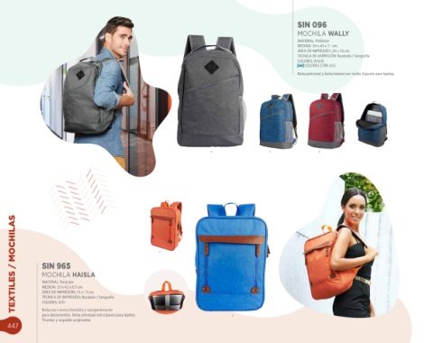 Bolsa principal y b olsa lateral con m alla. Espacio para laptop.