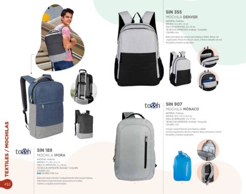 Incluye organizador de docum entos. Bolsa principal y frontal.