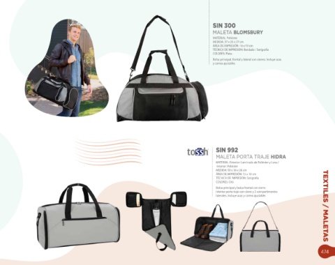 laterales. Incluye asas y correa ajustable. TEXTILES / MALETAS