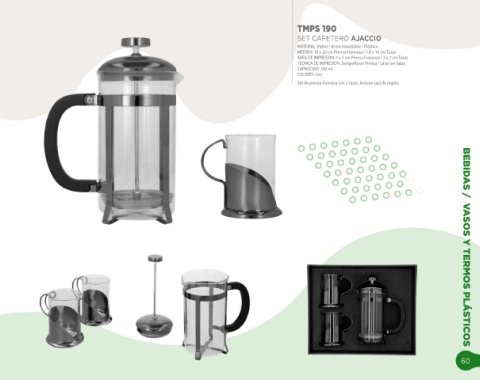 Set de prensa francesa con 2 tazas. Incluye caja de regalo.